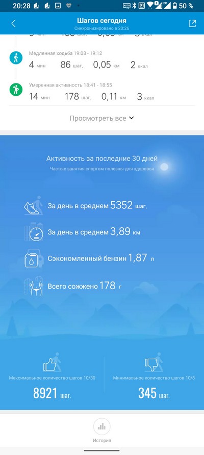 Вот, например, статус активности и PAI. Их можно прокручивать вниз для получения подробностей.