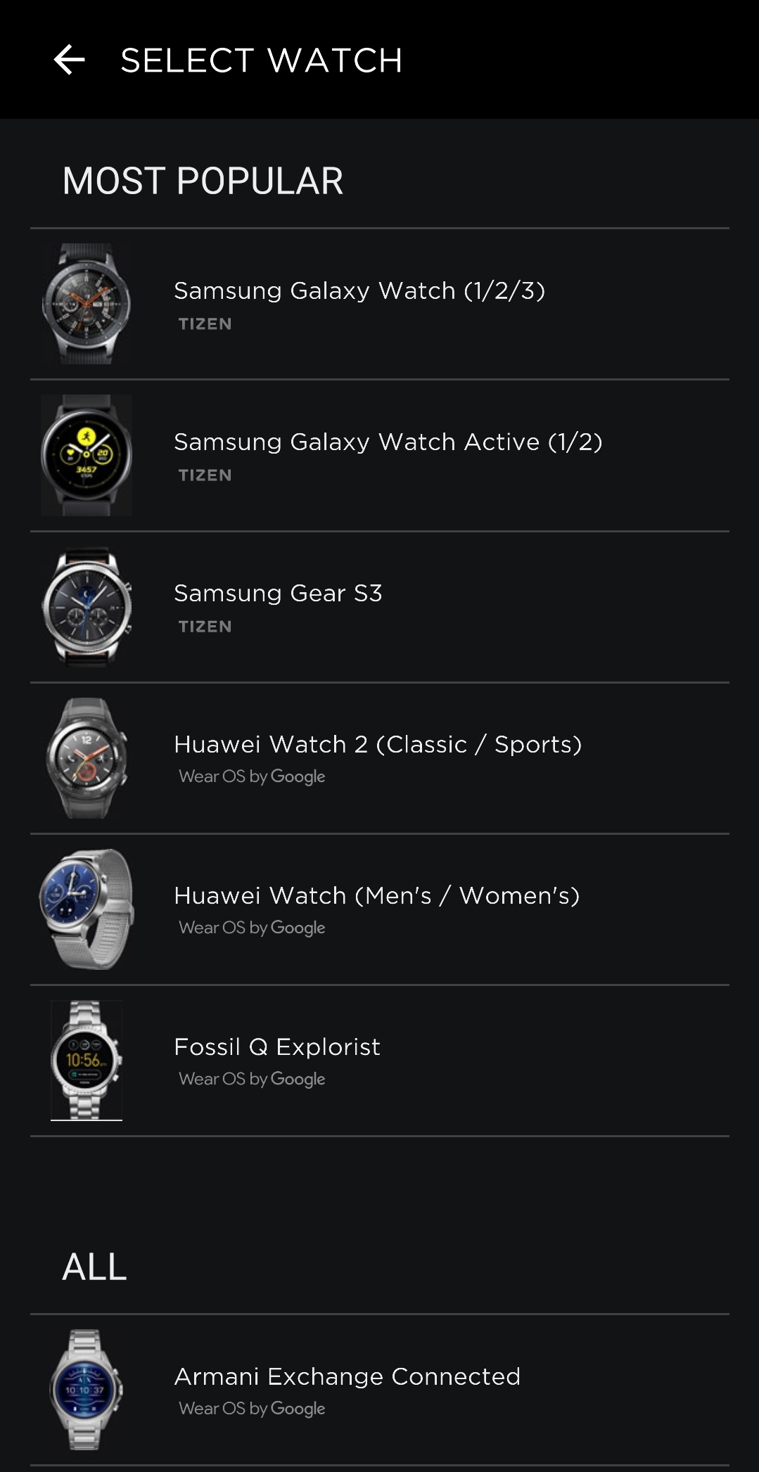 Подключенные к приложению часы и избранное. Страница часов.