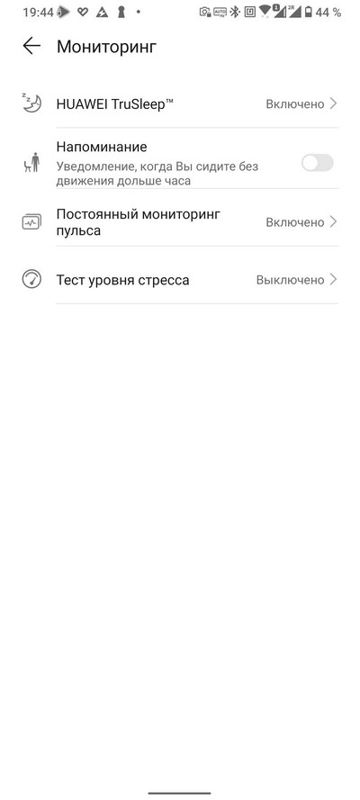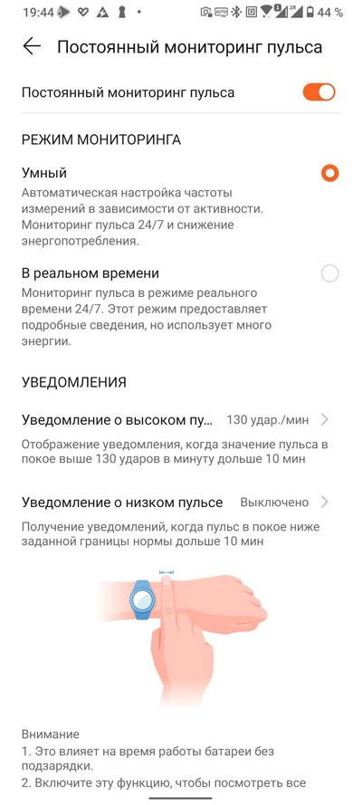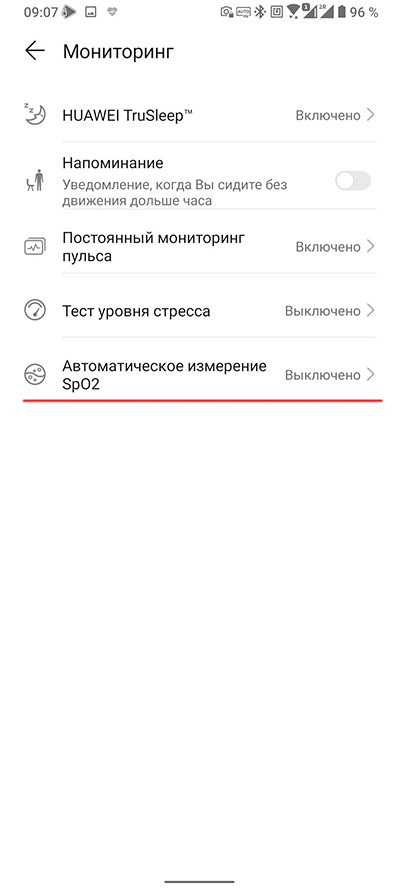 Настройки мониторинга. Вот здесь должна появиться опция постоянного отслеживания уровня оксигенации, но ее пока нет. Настройка мониторинга пульса.