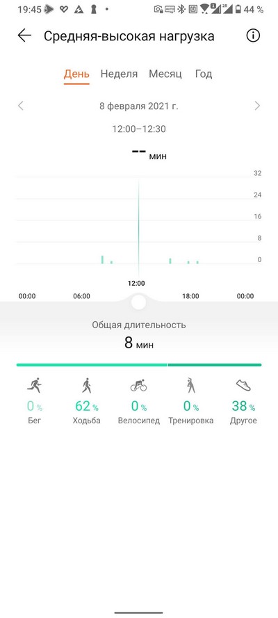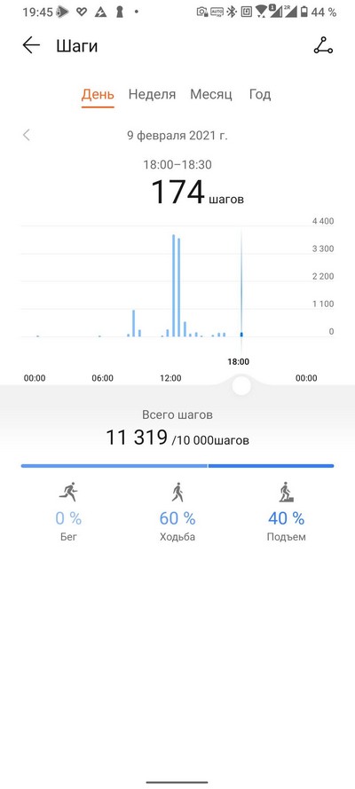График активности - шаги, время, уровень активности: там тоже несколько экранов данных.