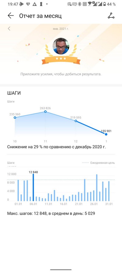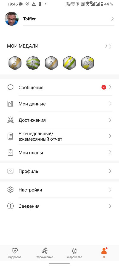Профиль пользователя и всякие награды. На которые в моем случае вообще не нужно обращать никакого внимания, потому что у меня трое часов (фитнес-браслетов) на неделе, я ведь их постоянно тестирую.