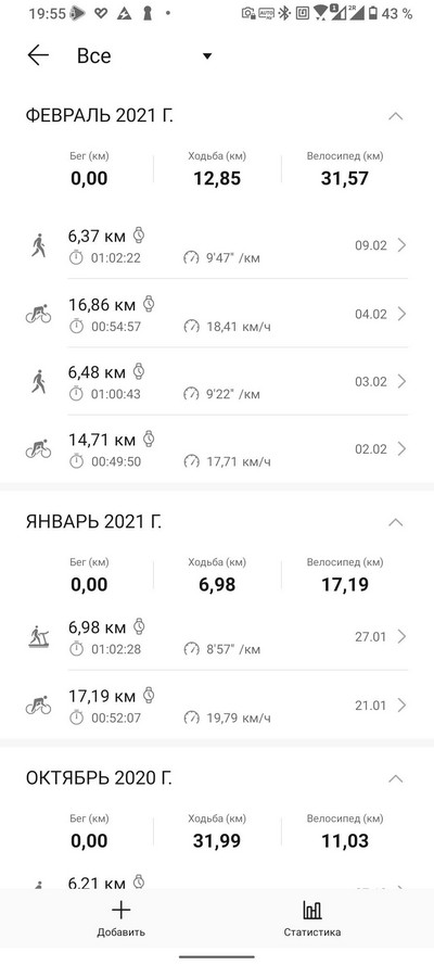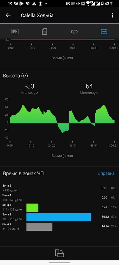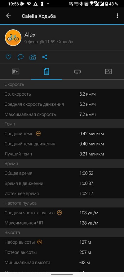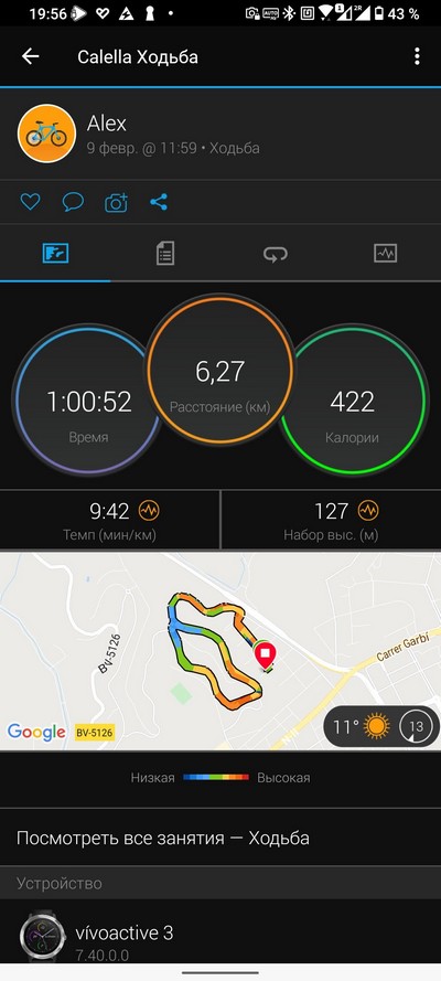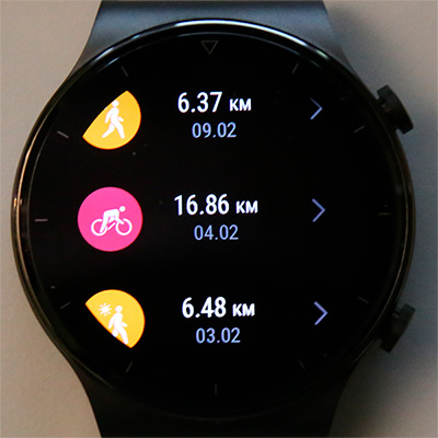Ну и теперь список тренировок и запись одной из тренировок. Запись тренировки сравним с той же тренировкой в Garmin Vivoactive 3.