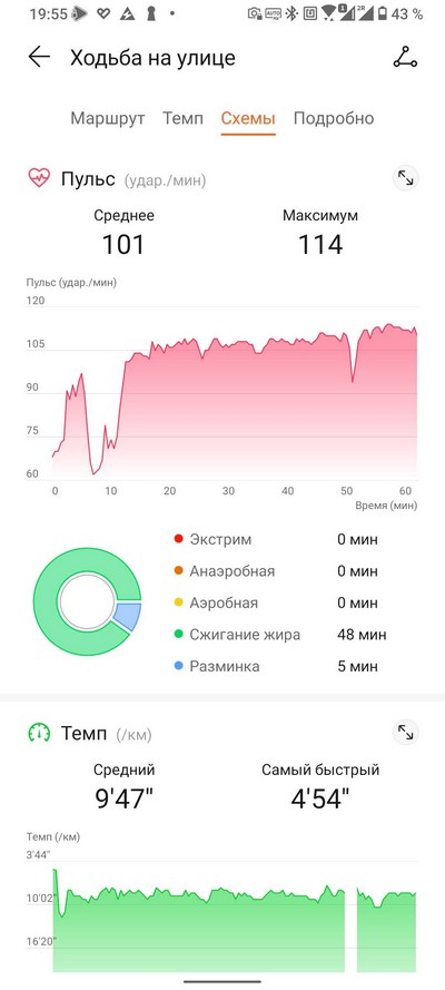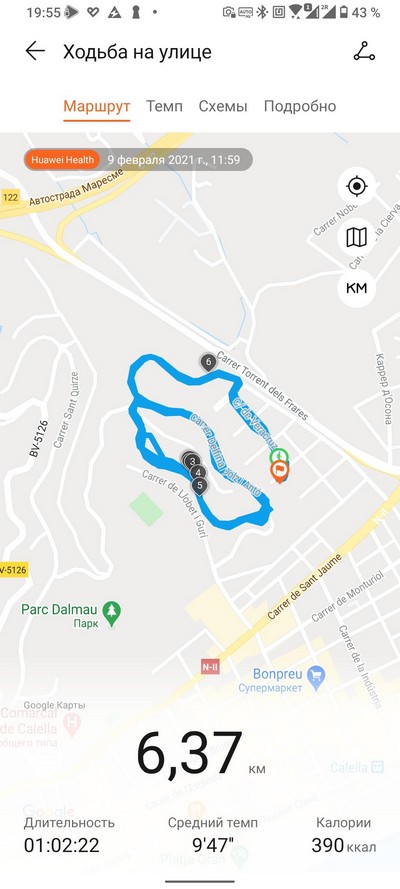 Расстояние, трек прогулки, средние скорости и все остальное часы Huawei зафиксировали достаточно точно, небольшая лажа была с определением максимального пульса, однако такие вещи зависят от браслета и от того, насколько хорошо он затянут (а у миланской петли с этим есть определенные проблемы). Потому что в обычном режиме эти часы пульс измеряли очень четко - я неоднократно сверял с тонометром.