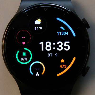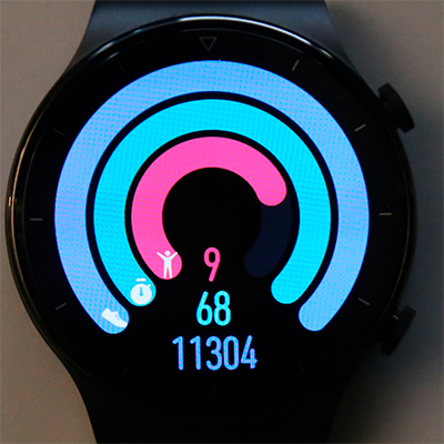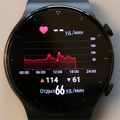 Дисплей на матрице AMOLED отличного качества, и он, судя по всему, такой же, как и у модели GT 2. На стекле есть олеофобное покрытие, так что от прикосновения пальцев стекло заляпывается очень несильно.