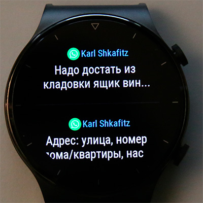 От циферблата свайп вверх - список уведомлений. При щелчке по уведомлению оно открывается и его можно прочитать полностью.