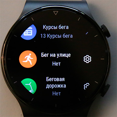 Нижняя кнопка (она настраивается) - тренировки. Здесь более 100 (!) режимов тренировок (их набор настраивается). Также здесь установлено 13 курсов бега с голосовым помощником, который будет давать вам советы для улучшения результатов тренировок.