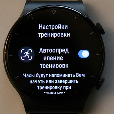 Настройка действия по нажатии нижней кнопки и включение режима автоматического определения тренировки (удобная штука).