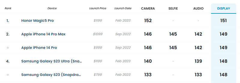 На сайте DXOMark дисплей этого смартфона находится в первой пятерке.