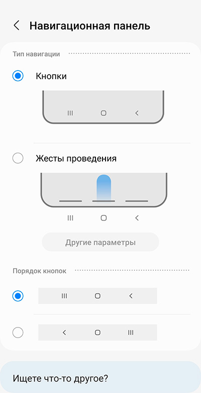 Как обычно у Samsung, что мне очень нравится, здесь есть не два, а три варианта управления: обычные экранные кнопки (настраиваемые), обычные экранные жесты (Android) и специальные жесты Samsung, которые делаются только от нижней кромки экрана (я именно их и использую).