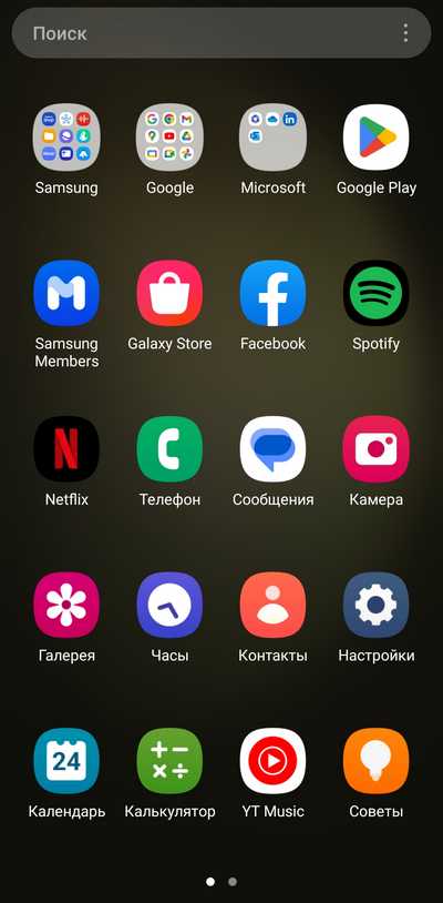 Android 13, оболочка One UI 5.1. Главный десктоп и область быстрых переключателей.