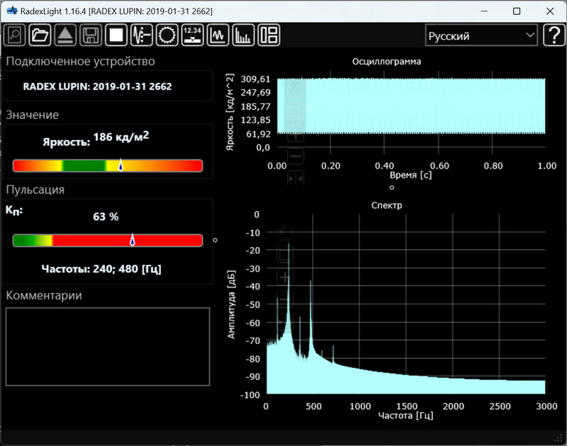 75% яркости - уже мерцает вовсю: 63% при норме 20%.