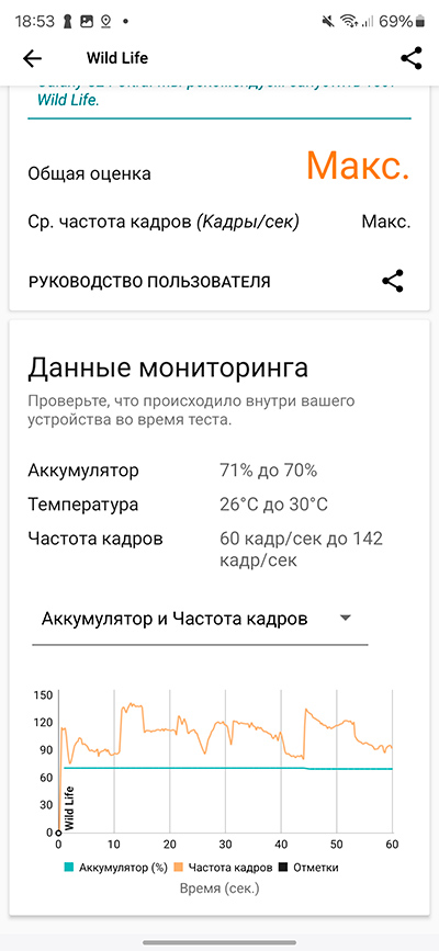 Аккумулятор здесь емкий, 5000 мА·ч, но и самая мощная на рынке платформа. Тесты я проводил при автоматической частоте обновлении экрана и при разрешении FHD+.
