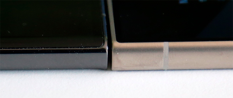 У задней крышки тоже никакого скругления краев нет, а у предыдущей модели они были - вот они рядом.