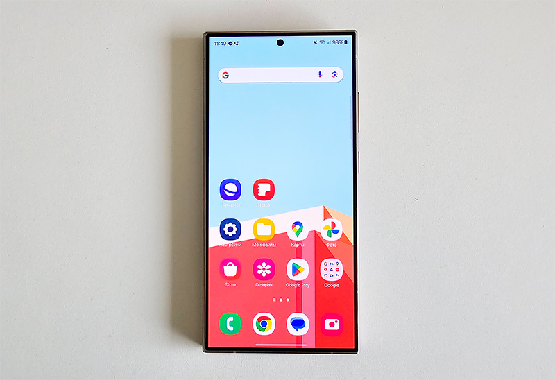 Дисплей на матрице Dynamic LTPO AMOLED 2X прекрасного качества, есть поддержка частоты обновления 120 Гц. Максимальная яркость в автоматическом режиме - аж 2600 нит, так что на прямых солнечных лучах изображение отлично различимо. Также замечу, что антибликовый фильтр здесь явно лучше, чем у S23 Ultra - экран заметно меньше бликует.
