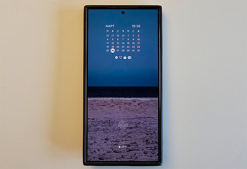 У AOD теперь также выводятся специальные обои, и выглядит это все очень эффектно. Собственно, как я и говорил, это теперь тот же экран блокировки, только с уменьшенной яркостью. И не сказать что это как-то заметно влияет на расход аккумулятора.