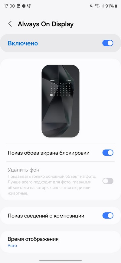 С режимом постоянно включенного дисплея они несколько намудрили. Раньше было все просто: раздел AOD, в котором все настраивалось. Сейчас они AOD значительно расширили, однако чтобы добраться до всех возможностей настройки, вам придется как следует порыться.