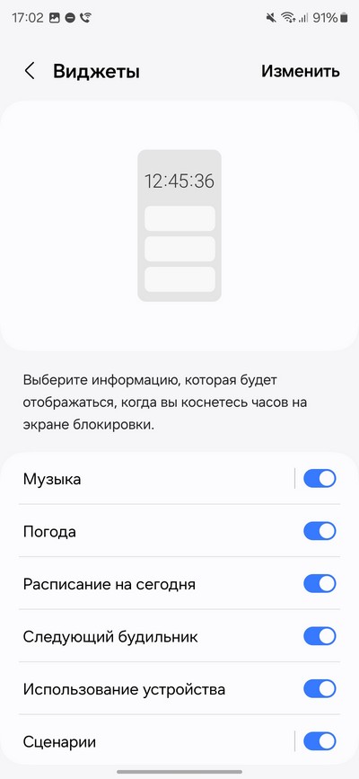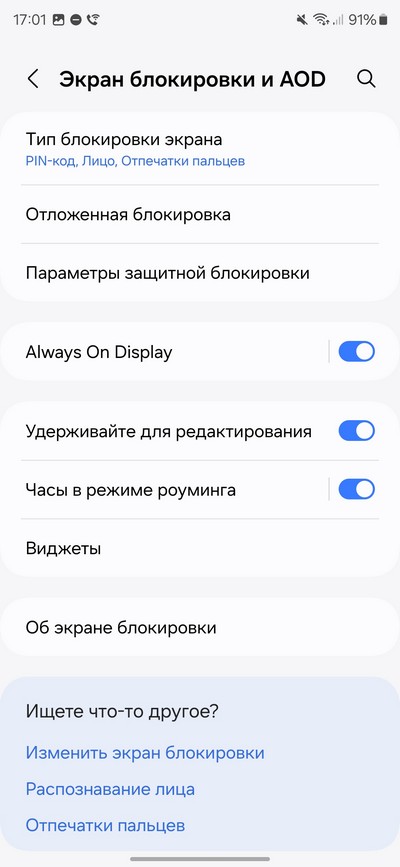 И есть настройки режима AOD в разделе "Экран блокировки и AOD". И там уже настраиваются виджеты экрана блокировки и AOD. И, впрочем, логика в этом есть, потому что если раньше экран блокировки и экран AOD были совершенно разные, то теперь это практически единое целое, и это здорово.