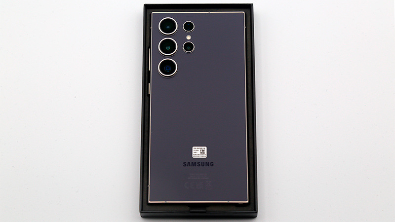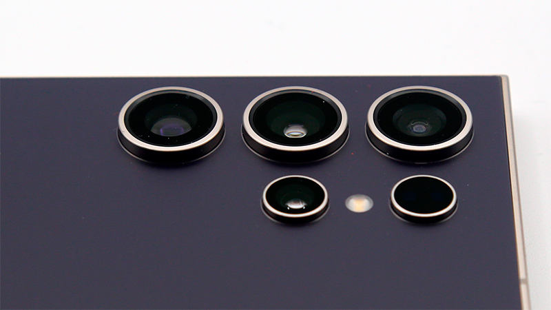 Задняя крышка покрыта матовым стеклом, раздельные глазки камер и датчиков находятся почти на тех же местах, что и у S23 Ultra, но если раньше были окружены темными металлическими кольцами, то сейчас они светлые (кроме серой версии), и это выглядит заметно более эффектно.
