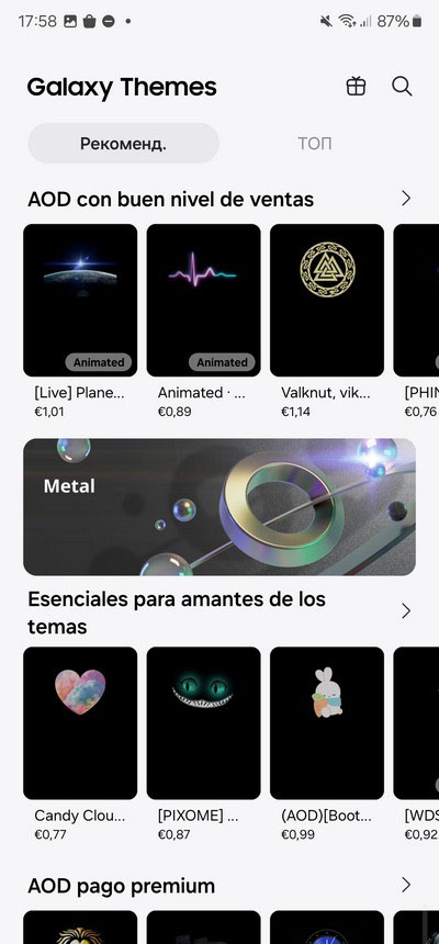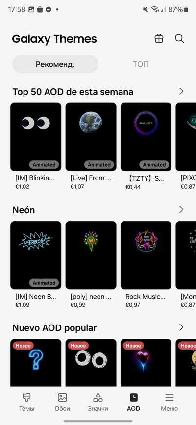 Как обычно, у Samsung большой выбор самых разнообразных тем, которые можно скачивать через Galaxy Store. Но большинство тем - платные, стоят 1-2 доллара. Впрочем, для каждой темы дается 10-минутный ознакомительный период, что удобно.