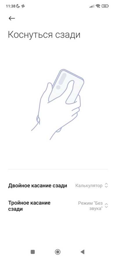 И можно задать реагирование на двойное-тройное касание задней крышки. Я все думал - по чему там постукивать, если блок камер занимает 2/3 пространства? Оказалось - прямо по блоку и постукивать, но, разумеется, не по глазку камеры, а по площадке, где находится вспышка - она как раз лежит под указательным пальцем.