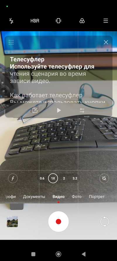 У видео даже есть такой режим, как "телесуфлер". Правый скриншот - съемка портрета.