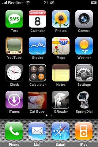 Следующий несколько странный принцип - псевдомногозадачность. Windows Mobile - система многозадачная. Вы можете запустить хоть тридцать программ (если позволяет оперативная память), которые будут работать параллельно. А вот в iPhone 2G в один момент, как правило, может быть запущена только одна программа, что делает несколько затруднительным использование, например, мессенджера. Впрочем, многозадачка как таковая там все-таки существует - есть приложения, которые при закрытии остаются в памяти, продолжая работать, и Mac OS X их принудительно потом выгрузит, в случае если ей не хватает памяти для запуска новых приложений. Но основной принцип все-таки однозадачный - запустили приложение, поработали с ним, закрыли, запустили другое приложение.