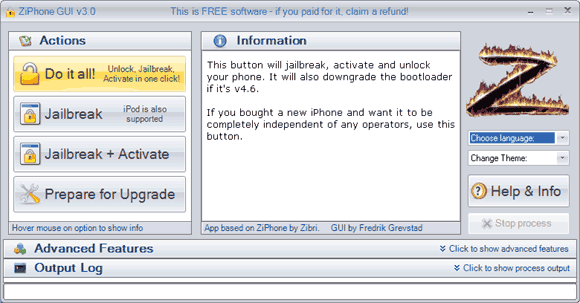 Если у вас в телефоне уже установлена прошивка 1.1.4, тогда скачайте ZiPhone, запустите ZiPhone GUI, прочитайте инструкции и нажмите кнопку Do it all.