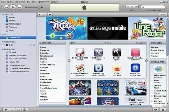 Окно iTunes Store в iTunes