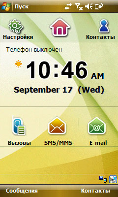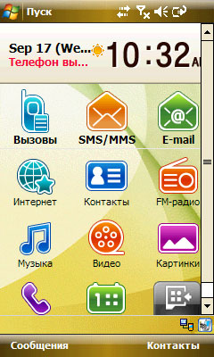 Следующее нововведение разработчиков - так называемое большое меню, которое вызывается специальной кнопкой. Большое меню превращает ваш коммуникатор в нечто вроде iPhone - выводит на экран крупные пиктограммы различных приложений и групп приложений.