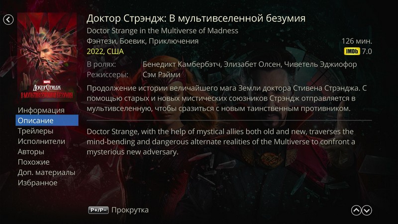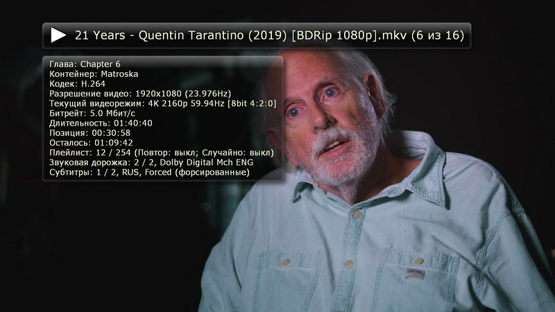 Перемотка по таймлайну - медленная и быстрая. Это доступно во всех вариантах воспроизведения различных видеотреков, DVD и Blu-ray. Очень удобная возможность, я часто ее использую. Также, разумеется, фильмы можно листать по главам.