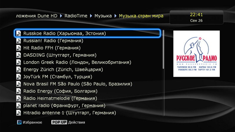 После этого появился стандартный интерфейс медиаплееров Dune, который мне хорошо знаком (он настраивается и варьируется в широких пределах).