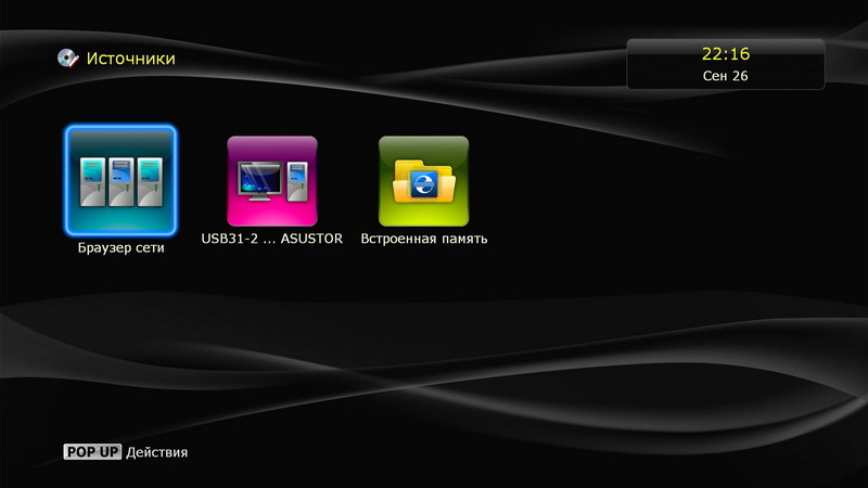 Посмотрим на то, как работает навигация по различным источникам - прежде всего, по накопителям домашней сети.