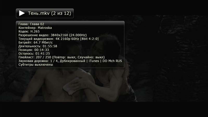 Дюна шелл кстати имеет на самом деле 3 встроенных проигрывателя. Если вы воспроизводите образ блюрика с меню, то управление будет одно, типа как с пульта BD плеера , если смотрите образ как ремукс или mkv файл , то работать будет по другому , а если образ DVD то уже третий вариант плеера. Самый лучший это второй конечно, привыкание мгновенное.