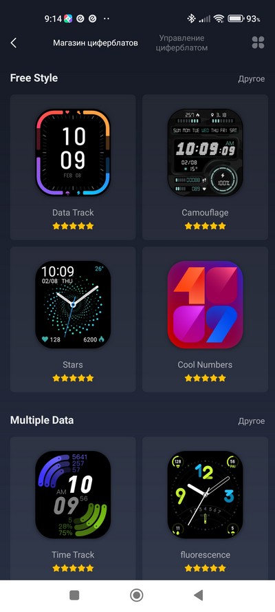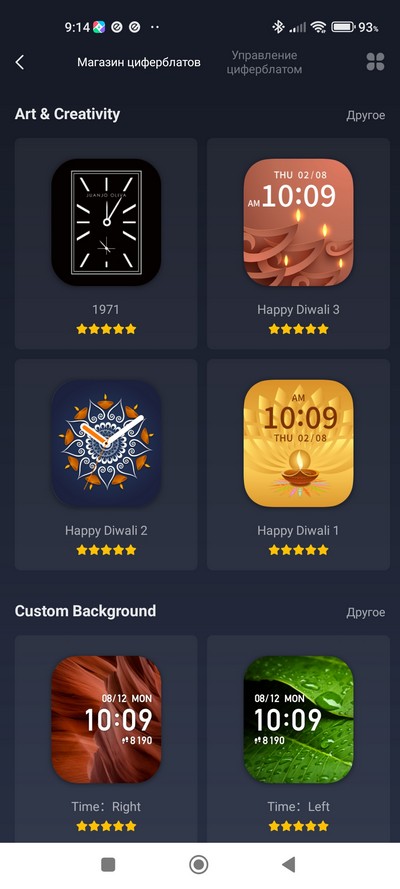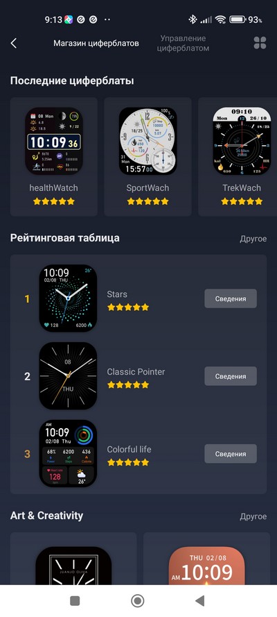 Циферблаты меняются прямо на часах (длинное нажатие), новые циферблаты подгружаются в часы через приложение.