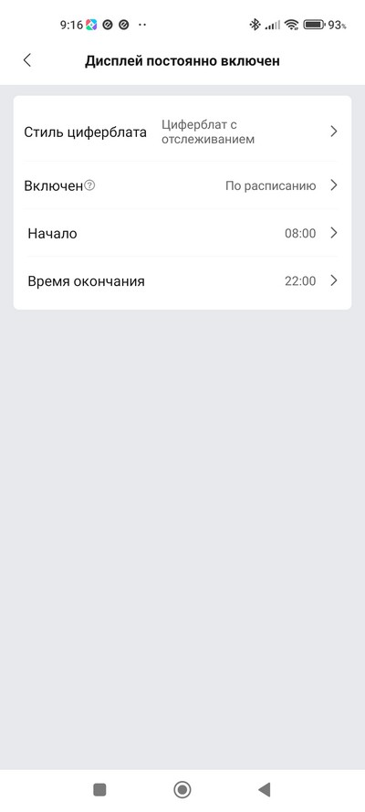 Настройки - настройки часов. Там можно задать режим постоянно включенного экрана. При этом можно задать что-нибудь из предустановленных циферблатов AOD, коих всего два. Однако каждый обычный циферблат имеет свой вариант экрана AOD, и вы это можете менять на предустановленный.