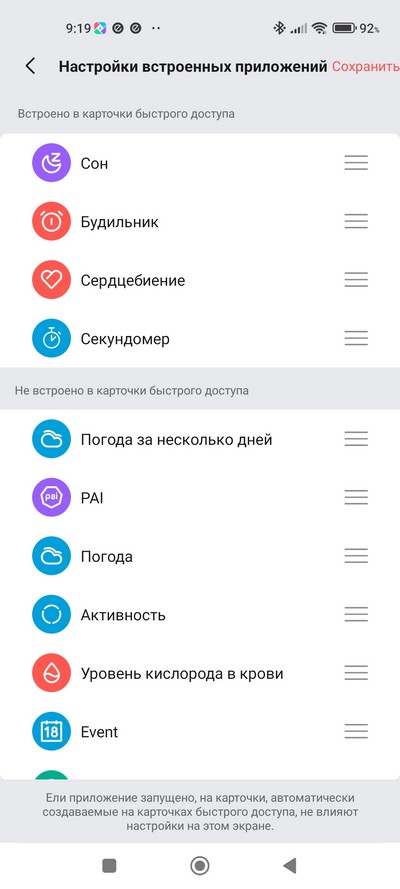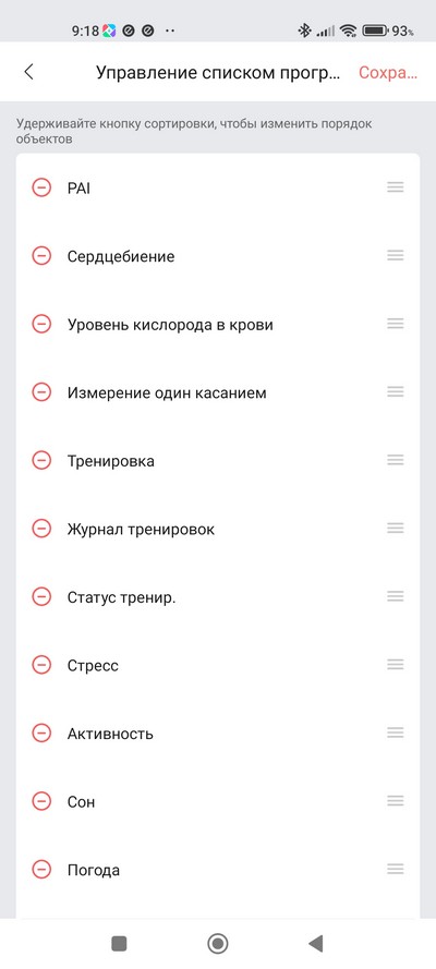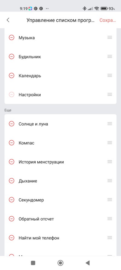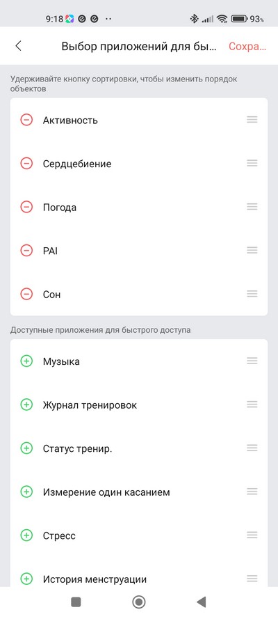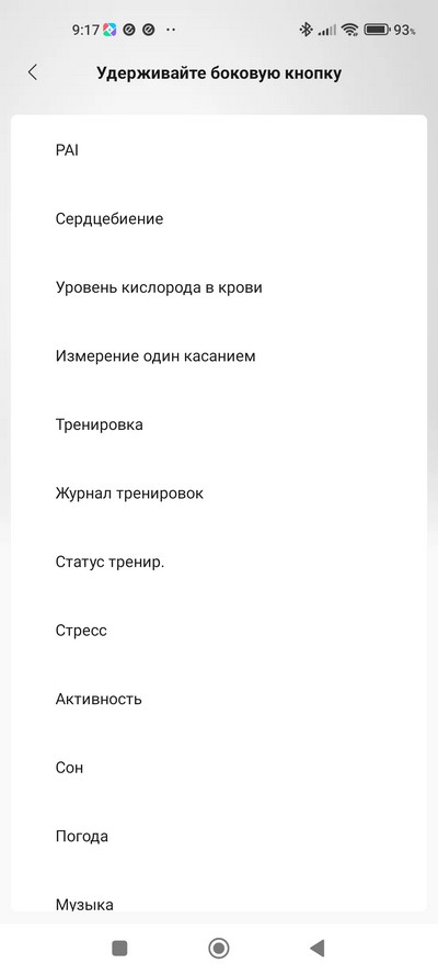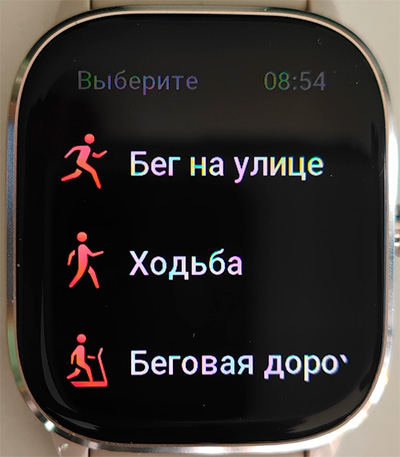 Спортивные режимы. По умолчанию эти режимы нужно выбирать из списка всех приложений, однако можно определить вызов спортивных режимов, например, по длинному нажатию управляющей кнопки.