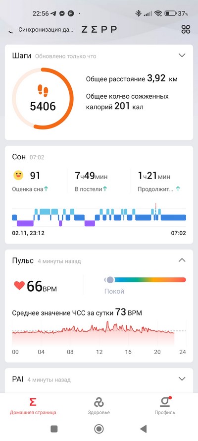 Мониторинг: сон, физическая активность, тренировки, сердечный ритм, оксигенация крови