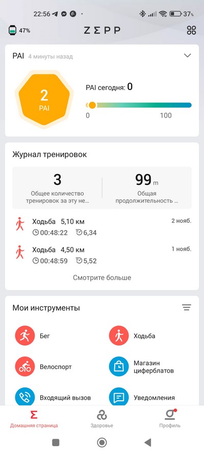 С точки зрения отслеживания активности тут все неплохо. Сон фиксирует четко, пульс отслеживает нормально (если рука не влажная), оксигенация крови - точно так же, как и все остальные часы (если нужно получить более или менее достоверные данные, то нужно четко выдерживать соответствующие требования по процедуре измерения). Тренировки отслеживаются терпимо: поездки на велосипеде - достаточно точно, практически совпадает с данными часов Garmin Venu 2, а вот пешие прогулки - были небольшие расхождения по дальности. Но с пульсом часы не лажали, показывали достаточно точно.