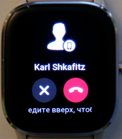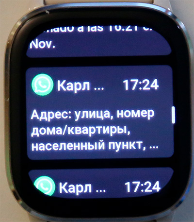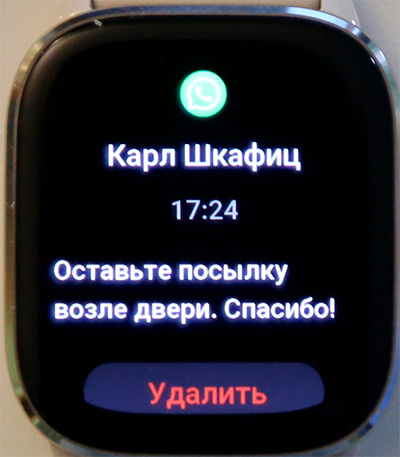 Свайп от циферблата вверх - список полученных уведомлений, нажатие по уведомлению - вывод его целиком для прочтения. Отвечать на уведомление предустановленными сообщениями эти часы не умеют.