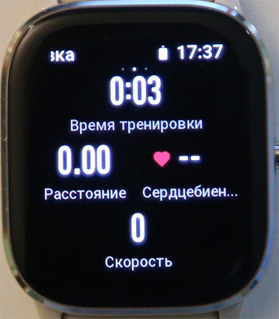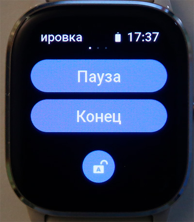 При тренировке свайп влево - аудиоплеер, который может управлять музыкой на смартфоне. Часы умеют автоматически приостанавливать тренировку в случае отсутствия активности, и это очень удобно. Свайп вправо - управление тренировкой.