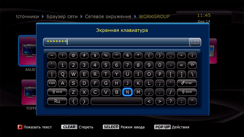 Плеер покажет доступные сети, нужно будет выбрать вид защиты и ввести пароль.