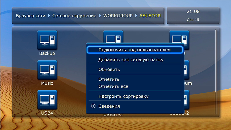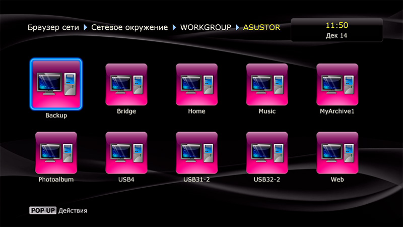 На самом деле делается это довольно просто. В списке расшаренных папок (подключенных к NAS дисков) на нужной папке нажимаете кнопкy Pop Up на пульте, после чего выбираете "Добавить как сетевую папку" и даете там удобное вам название.