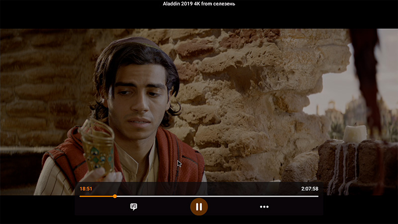 Чем воспроизводить? Да чем хотите, это же Android! Тут предустановлен плеер VLC - я его считаю самым удобным плеером для медиаприставок. Кстати, он сам поддерживает работу с сетевыми устройствами, так что можно прямо из него иметь доступ к NAS и воспроизводить там фильмы, но, впрочем, это значительно менее удобно, чем из ES Explorer. Поэтому у меня обычно работа с медиафайлами сети - ES File Explorer, а воспроизведение - VLC Player.