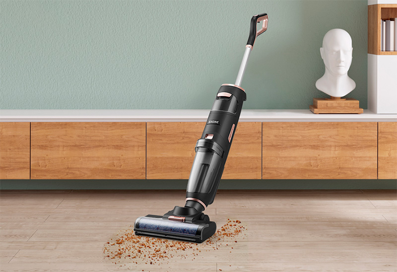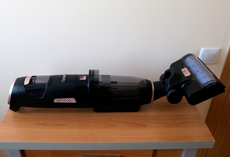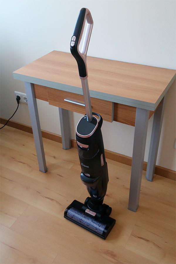Что в нем такого особенного? Вертикальный беспроводной пылесос с роликовой щеткой из микрофибры, с высокой мощностью всасывания, временем автономной работы в 30 минут на полной мощности, подходит для разных поверхностей, имеет три режима уборки (просто всасывание, влажная протирка полов, мойка полов), имеет удобную зарядную станцию, режим быстрой самоочистки, голосовой ассистент и дисплей.