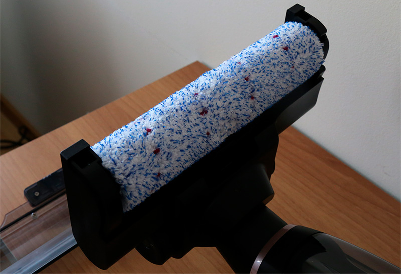 Роликовая щетка из микрофибры. Она также съемная, что облегчает ее очистку при сильном загрязнении.