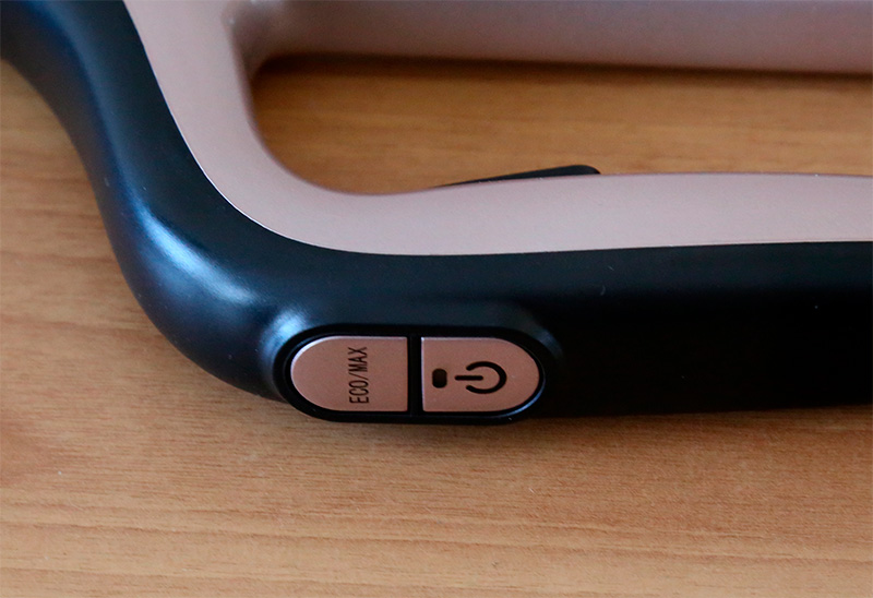На ручке есть три элемента управления: кнопка включения-выключения, кнопка переключения режимов с MAX на ECO и обратно, курок подачи воды в область роликовой щетки.