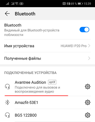 Как обычно, подключение производится или в режиме сопряжения в разделе устройств Bluetooth смартфона, или через касание смартфоном в соответствующем месте наушников (там нанесена метка) с включенным на смартфоне NFC.
