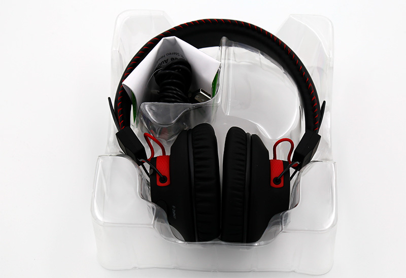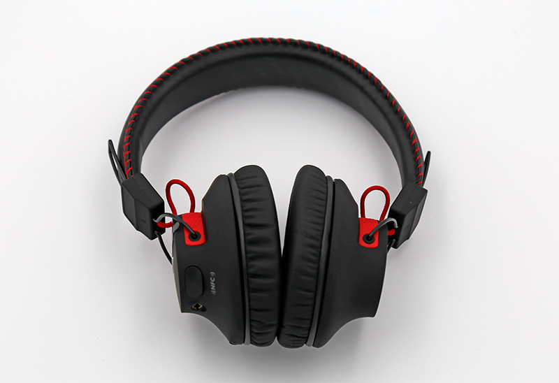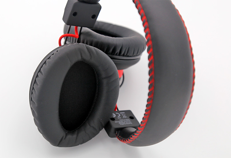 Внешне наушники выглядят очень достойно. Вот тут уже совсем не "бюджет-разбюджет". Оголовье прострочено красной ниткой, выходящие из оголовья кабели тоже красного цвета и на динамиках - красные пластиковые накладки. Чашки и насадки на оголовье покрыты материалом софт-тач.