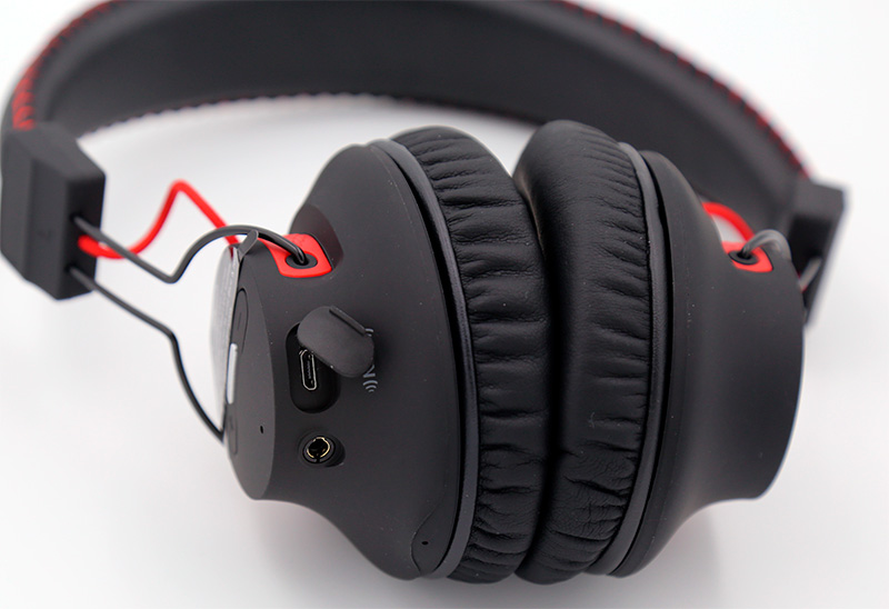 На левой чаше снизу - порт microUSB для зарядки, прикрытый пластиковой заглушкой, аудиовход, микрофон.