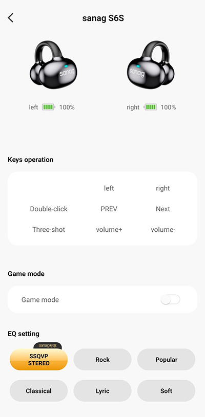 Впрочем, приложение мало на что сгодится: там разве что можно увидеть уровень заряда наушников, поменять местами управляющие клавиши (например, сделать так, чтобы тройное касание правого наушника делала громкость выше, а не ниже) и включить предустановленную настройку эквалайзера, но это очень мало влияет на звучание.